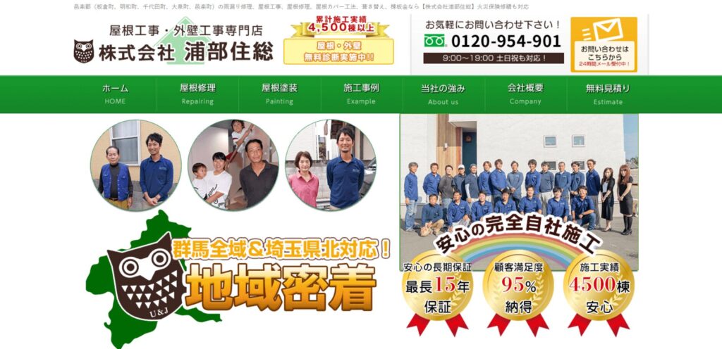 群馬県藤岡市を拠点に邑楽郡をはじめ群馬県全域と埼玉県北エリアで屋根修理・雨漏り修理・屋根工事を行う地域密着型の専門店です。自社施工による高品質で低価格な施工を実現し、ハウスメーカーでの新築建築経験により豊富な知識と経験を持っています。雨漏り診断士や一級塗装技能士などの有資格者が在籍し、無料診断から保証まで安心してお任せいただけます。