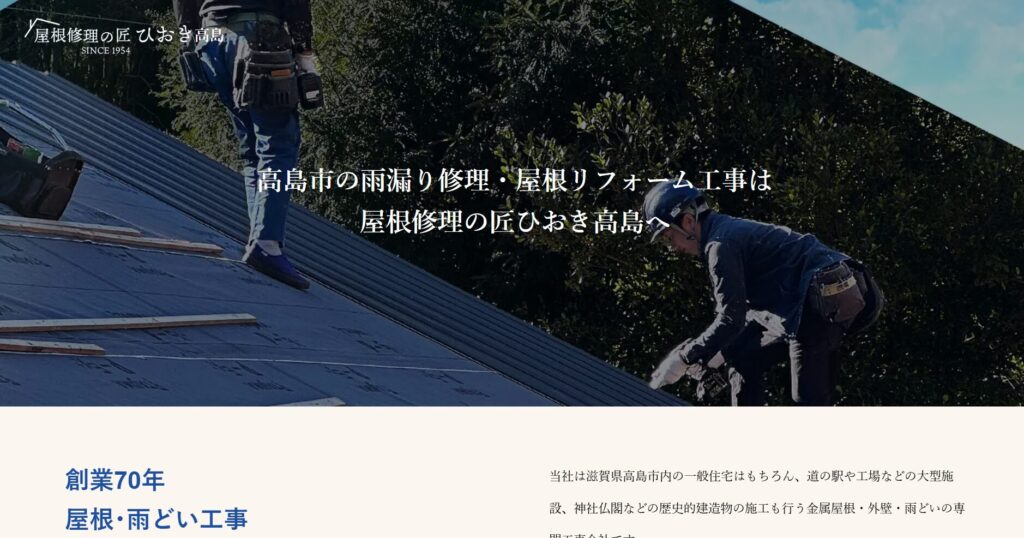 滋賀県高島市を中心に、一般住宅から神社仏閣まで幅広く対応する金属屋根・外壁・雨どいの専門工事会社です。ガルバリウム鋼板やSGL鋼板、ステンレス鋼板を使用した屋根工事を得意とし、創業70年の豊富な経験と技術で、お客様の予算に合わせた最適な解決策を提供します。営業担当者はおらず、屋根職人が直接相談を承り、中間マージンのない適正価格で高品質な工事を行っています。