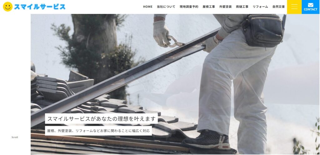 スマイルサービスは山口県光市を中心に屋根工事・外壁塗装・雨樋工事・リフォームなどに幅広く対応している会社です。施工前から仕上がりまで、すべてにおいてお客様と密になって行い、満足のいく仕上がりを提供します。屋根の葺き替え工事や雨漏り修理から戸建て全面リフォームまで、お客様の理想を一緒に叶えることを大切にしています。